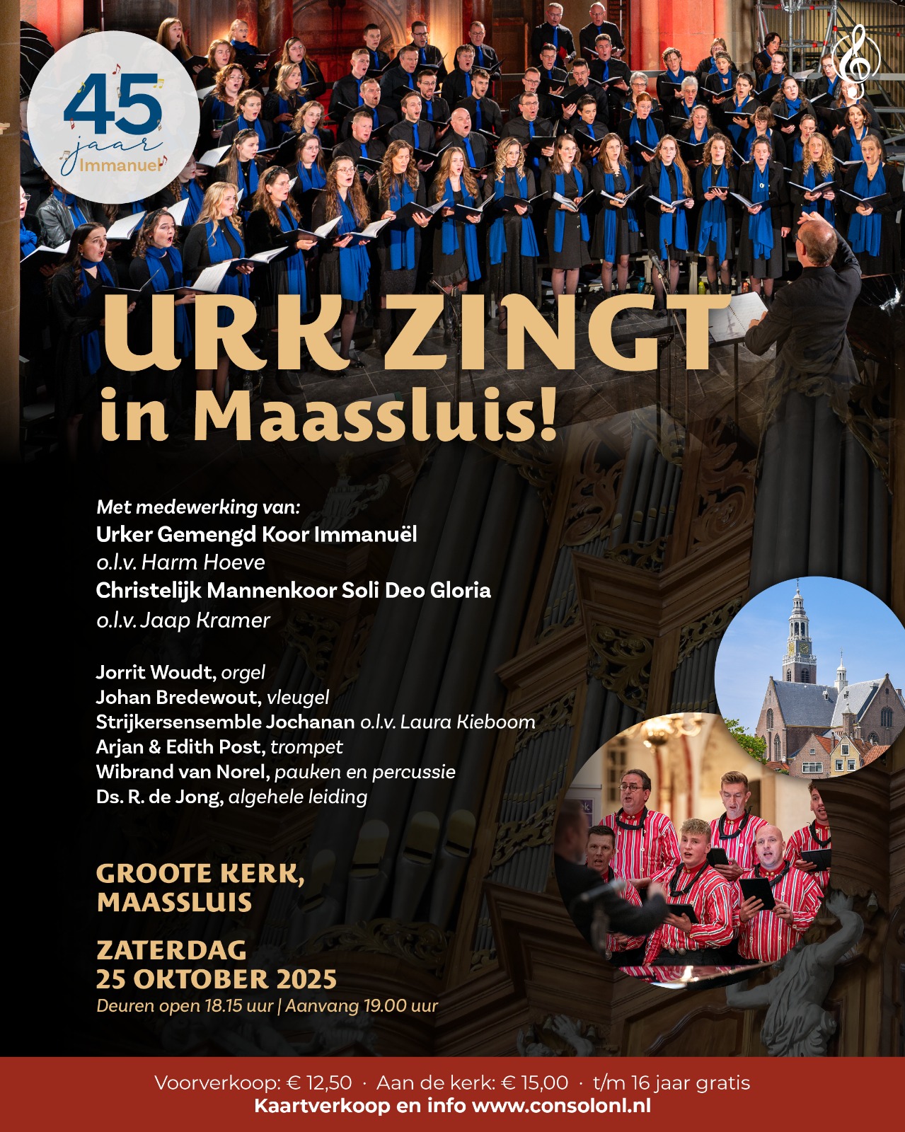 Groote Kerk Kerkplein 2, Maassluis, NetherlandsGezamenlijk concert van Urker Gemengd Koor Immanuël o.l.v. Harm Hoeve & Christelijk Mannenkoor Soli Deo Gloria o.l.v. Jaap Kramer