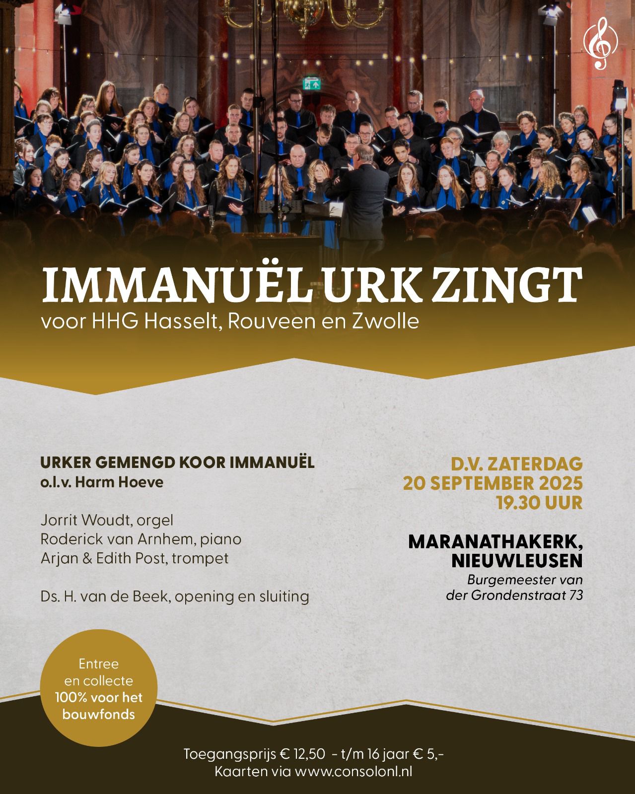 Maranathakerk Nieuwleusen, Burgemeester van der Grondenstraat 73Concert van Urker Gemengd Koor Immanuël o.l.v. Harm Hoeve